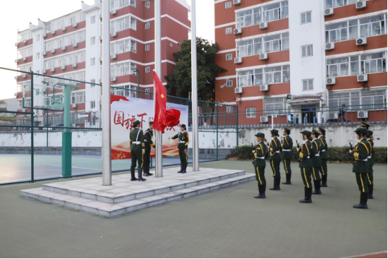 清晨7点20分,升旗仪式正式拉开帷幕。国旗护卫队的同学们,迎着第一缕阳光,迈着整齐划一的步伐,护送着五星红旗庄严地走向旗杆。全体师生面向国旗肃穆站立,行注目礼,鲜艳的五星红旗在激昂雄壮的国歌声中冉冉升起,爱国之情在每个人心中激荡。