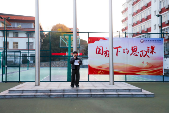 12月1日,为深入学习贯彻党的二十届四中全会精神,引导广大团员和青年勇担青春使命,体育学院、音乐与舞蹈学院在栖霞校区联合举办升旗仪式暨国旗下的思政课。此次活动由音乐与舞蹈学院学工办主任(团总支书记)邓露主持,体育学院组织员李媛媛老师和音乐与舞蹈学院第八届学生会主席杨书晋同学担任主讲人。音乐与舞蹈学院党总支副书记徐琴、体育学院辅导员穆耶赛尔•吾甫尔,以及两个学院的全体学生干部和部分学生代表共同参与了本次活动。