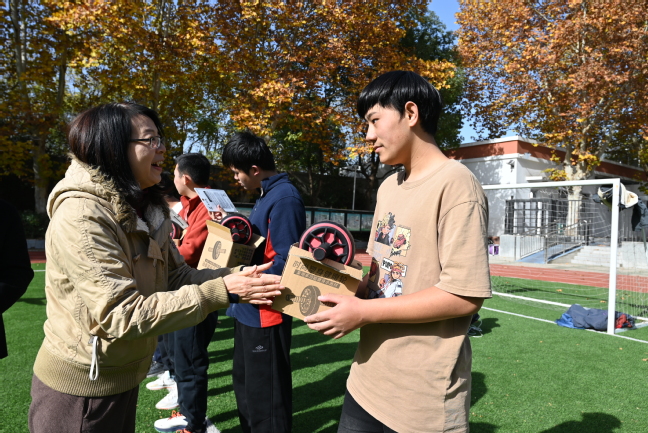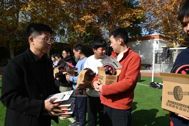 活动伊始,参会人员现场观摩了“快乐运动”体育社团的教学与训练。运动场上,栖霞特校的同学们在志愿者的指导下精神饱满地投入到花样跳绳的运动中。观摩结束后,参会领导为同学们发放了运动健身奖品,鼓励同学们日常生活中多开展体育运动提高身体素质。