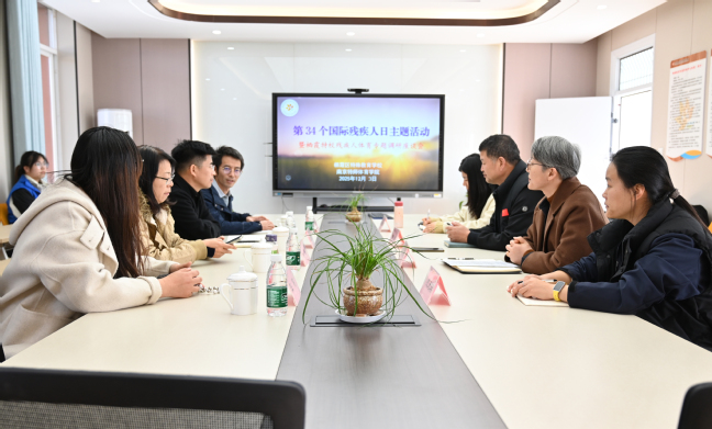 12月3日上午,在第34个国际残疾人日当天,体育学院来到栖霞区特殊教育学校调研残疾人体育开展情况。栖霞区残联副理事长王之千,栖霞区特殊教育学校副校长陈刚,体育学院副院长(主持工作)金梅、直属党支部副书记谢军及双方学校的部分专任教师参加。