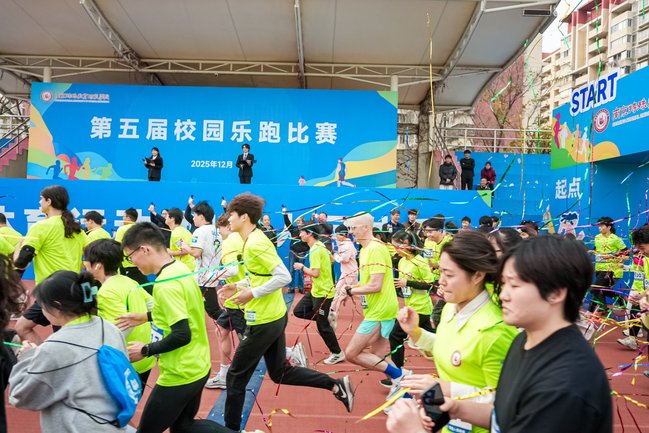 12月10日下午,我校第五届校园乐跑比赛在栖霞校区激情开跑。本次赛事吸引近600名师生踊跃参与,校党委书记黄军伟,党委副书记、校长王立新,党委副书记谭忠,党委常委、纪委书记、二级高级监察官于林惠,副校长张茂林及各职能部门、二级学院负责人亲临现场,为比赛鸣枪发令,拉开赛事序幕。